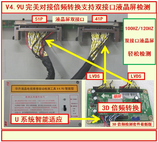 驅(qū)動檢測工具V4.9U智能型主機(jī)(第三版)+新20條通測LVDS屏線+U盤8G+3D倍頻檢測套件新版=1299元/套